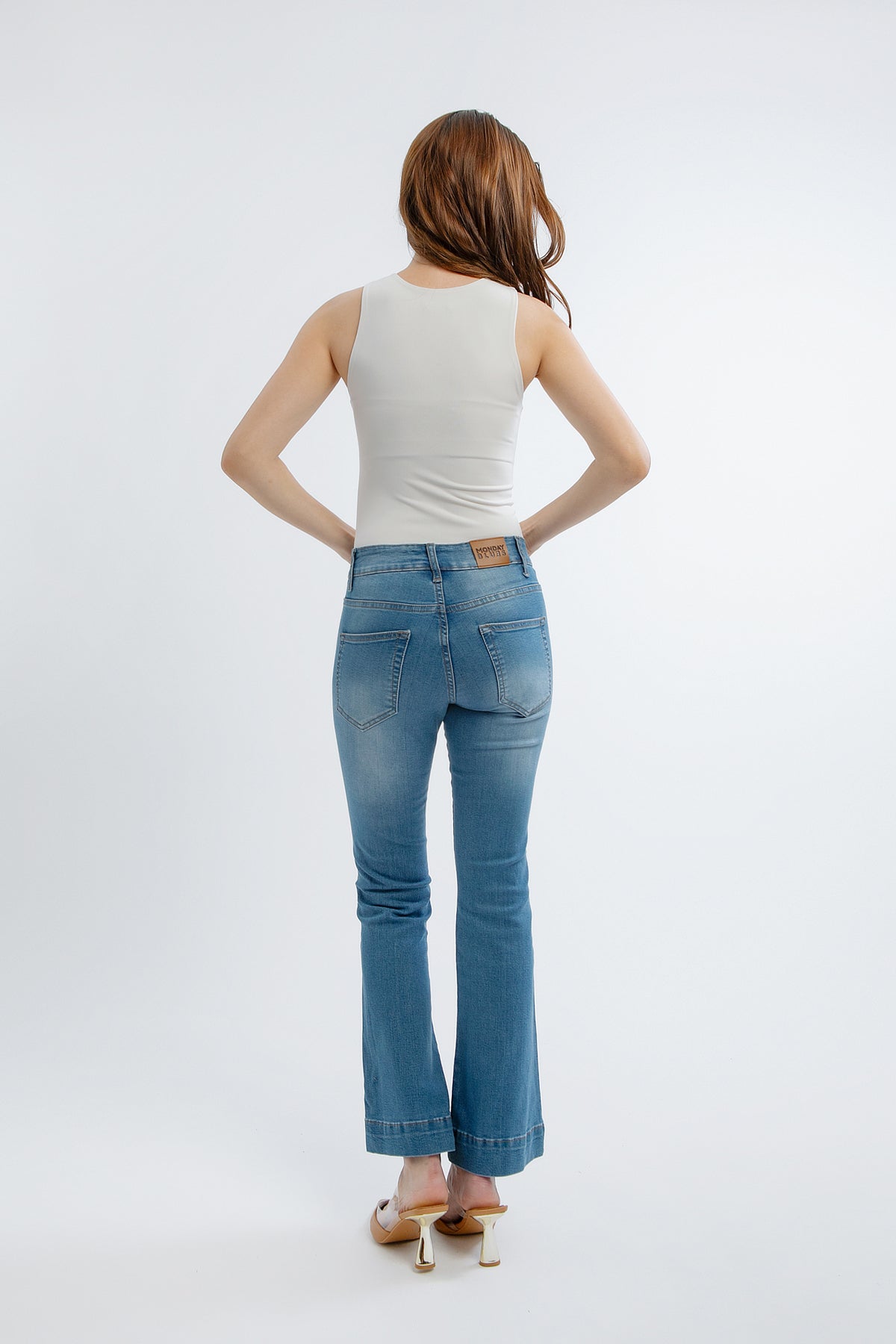 Aluna Bootcut Jeans is a high-waisted super stretch denim jeans designed for those who love a blend of timeless elegance and modern comfort.