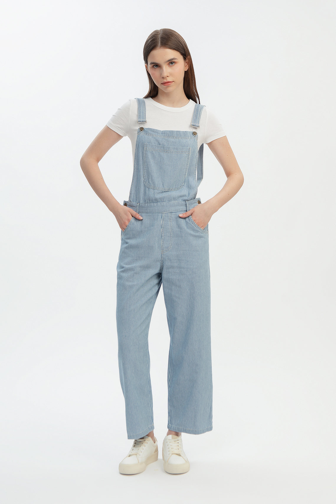 Pinstripe Denim Overalls