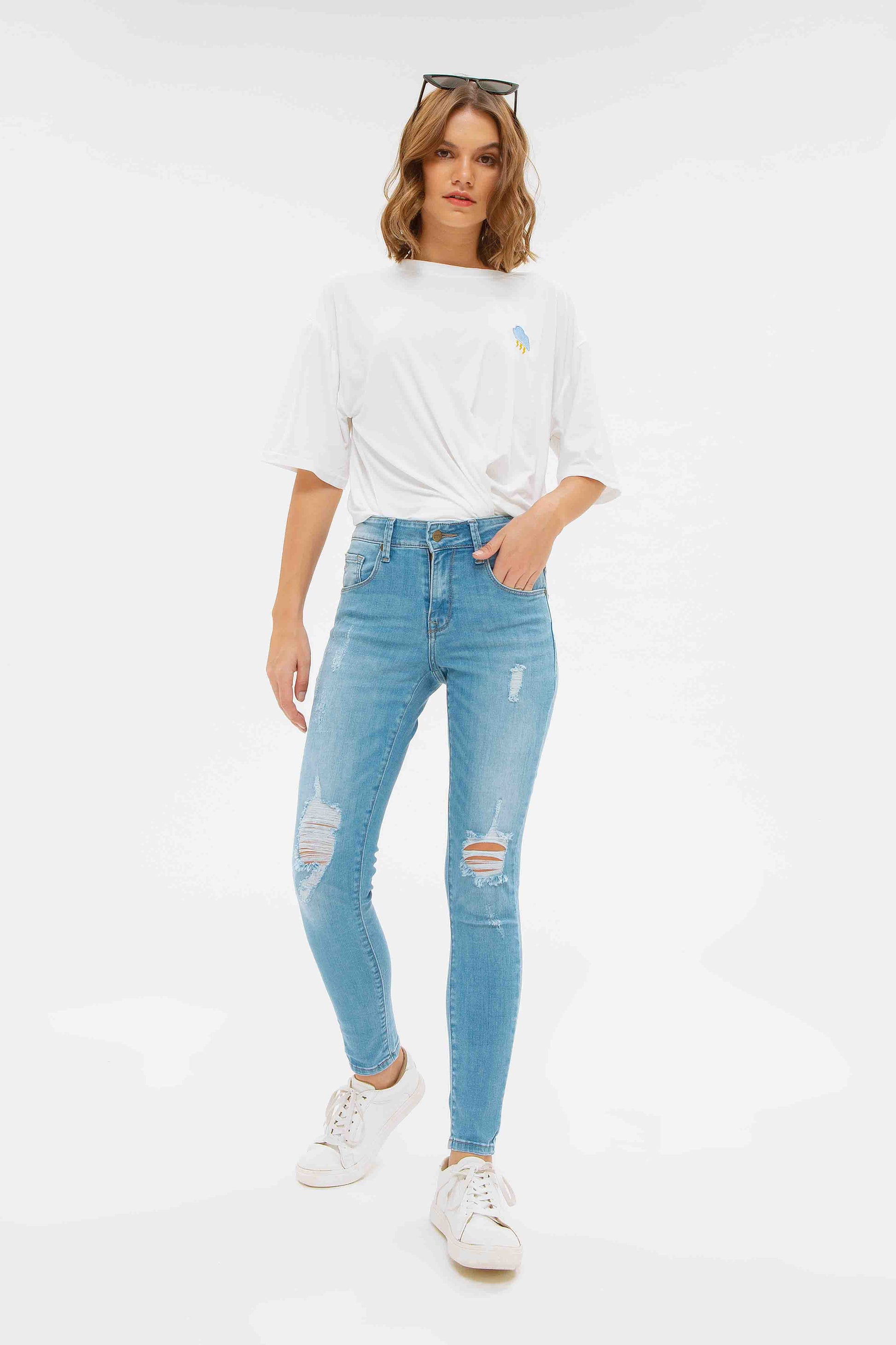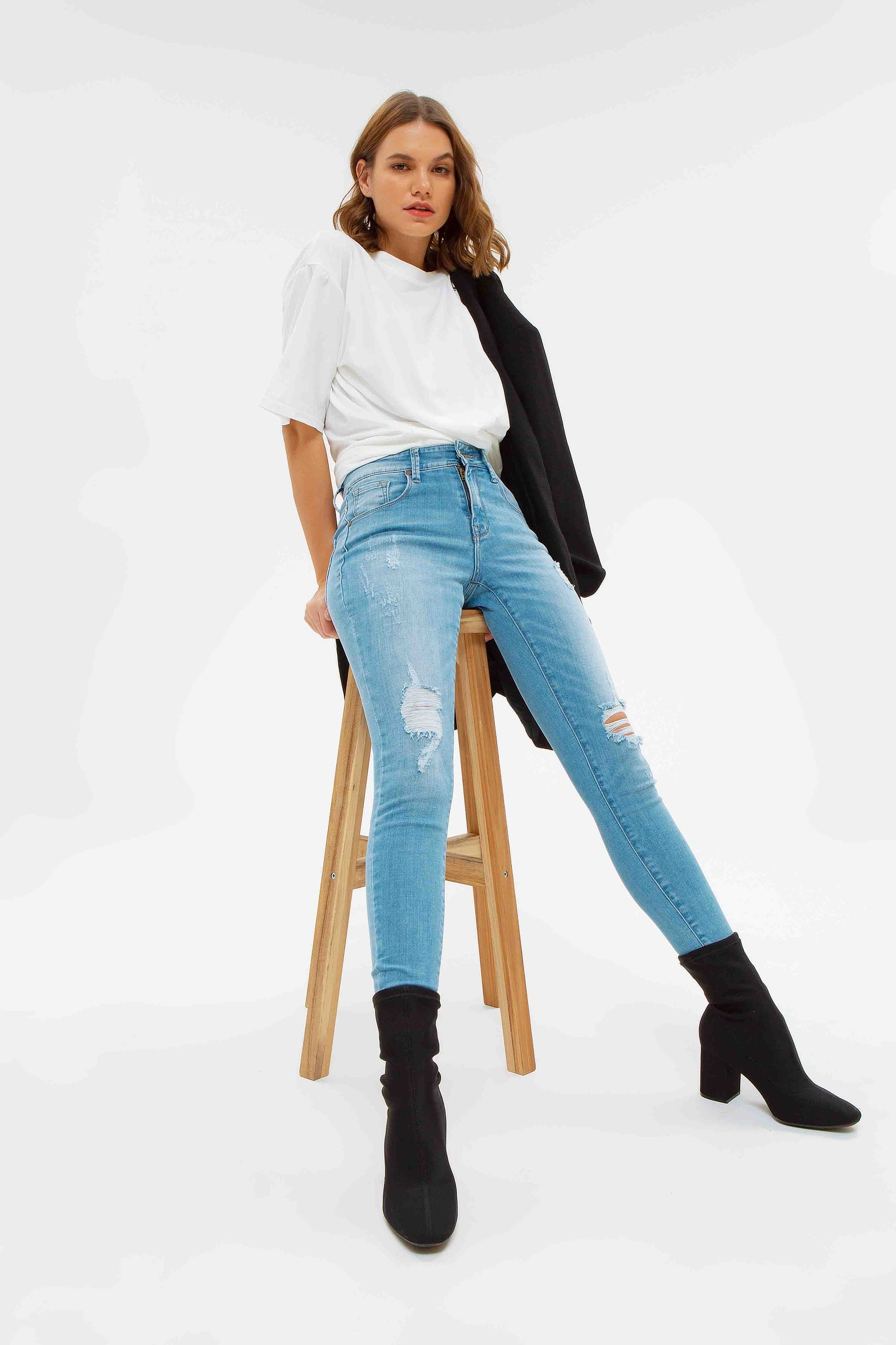 Meet our girl Zoey. She is a smart, confident woman. In the Ease Collection, we would like to portray a sense of comfort and confidence while wearing our jeans. We want each individual who wear our jeans to feel at ease. Our Zoey Skinny Jeans is made in our signature stretch material. With a high waist fit, light blue wash and rips, this pair of jeans is sure to steal some attention at the ease of your comfort.